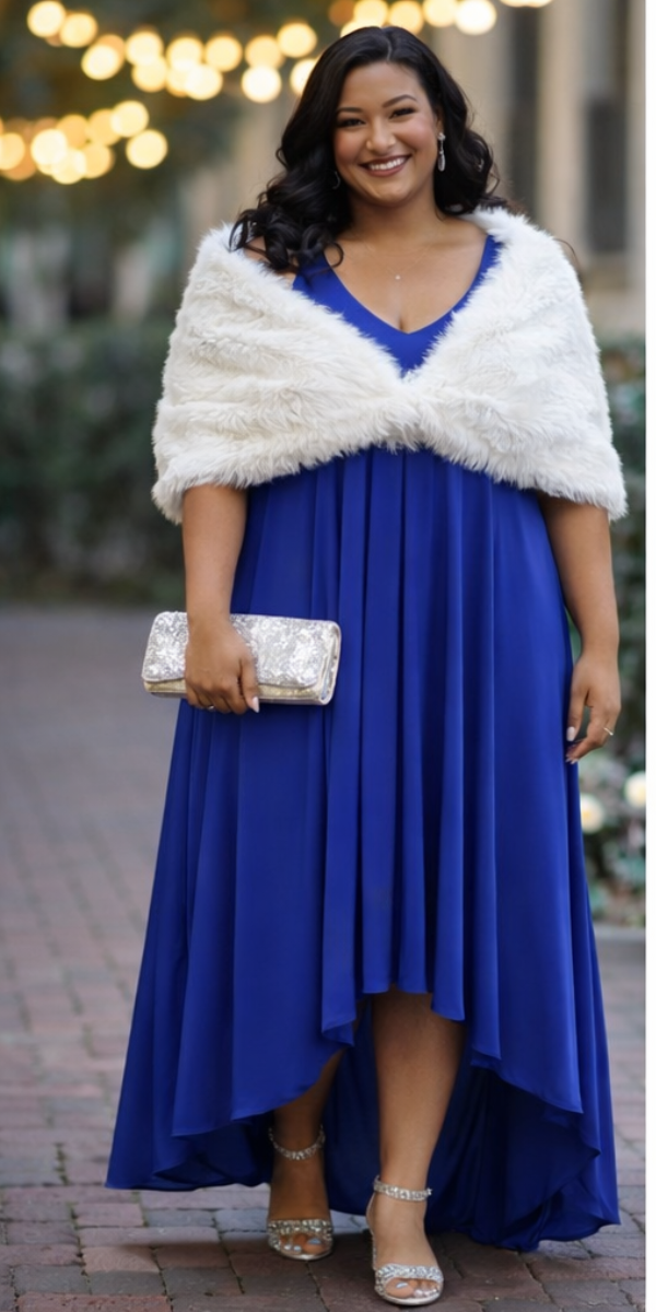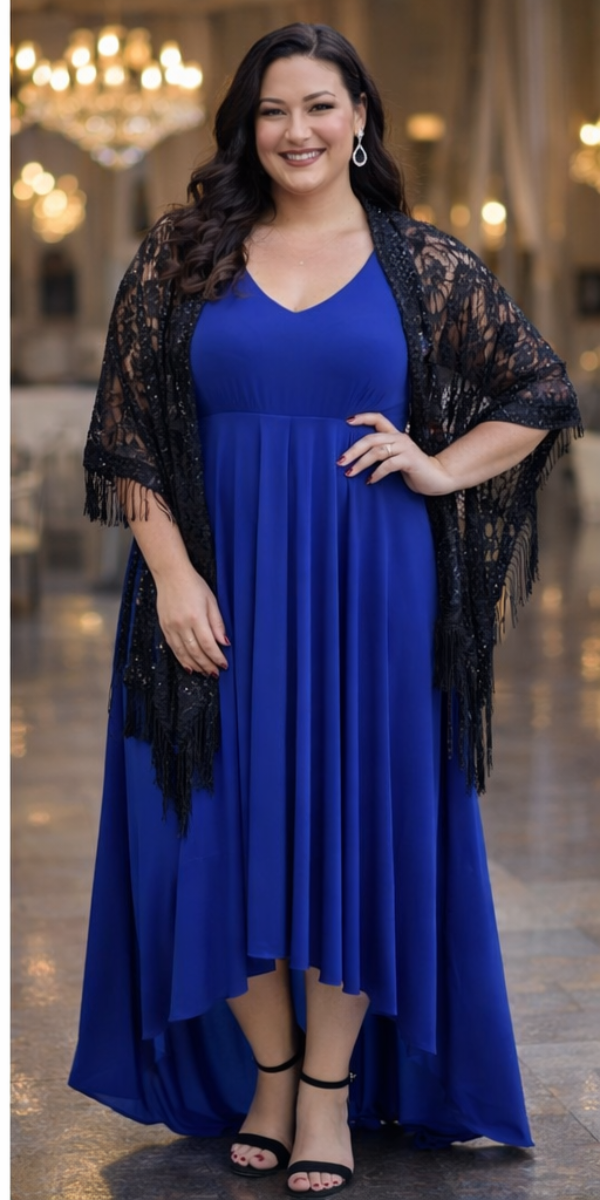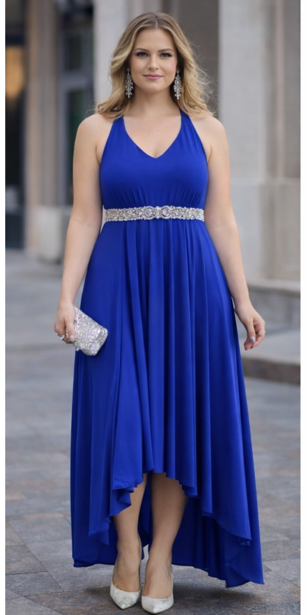 Step into timeless sophistication with this royal blue high-low dress, a versatile piece perfect for weddings, resort wear, or any special occasion. Designed with adjustable back straps, it offers a one-size-fits-most fit that flatters a variety of body types. The flowing high-low hemline and soft, stretchy fabric create effortless movement, while styling options like a denim jacket or lace bolero allow you to dress it up or down. Proudly made in Toronto, Ontario by RAPZ Canada, this dress blends comfort, versatility, and Canadian craftsmanship for moments that deserve to feel special.