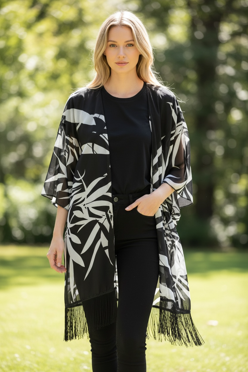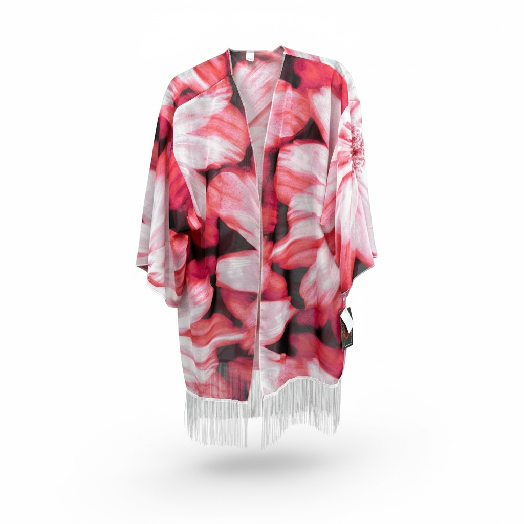 Made in Canada, this one size duster cardigan that has a simple design but highlights the beauty of anyone with it's vibrant colour! It's light and just makes dressing up super easy. This open style cardigan just floats on the body and provides an effortless look! The combined rich tones of red and pink just frame the look. It's a stand out compared to wearing plain black which is so refreshing! One size product that fits multiple sizes from 6-16.