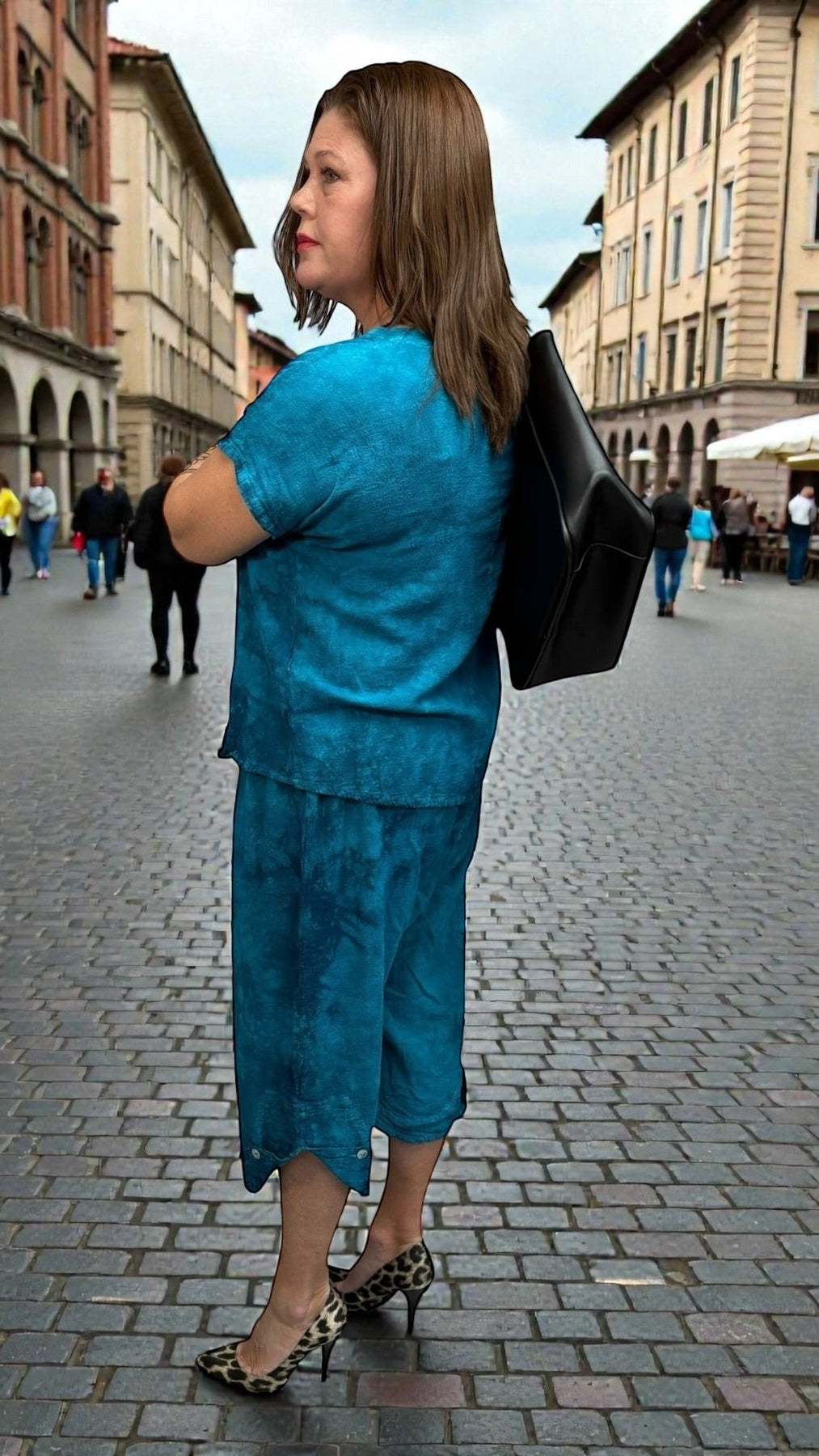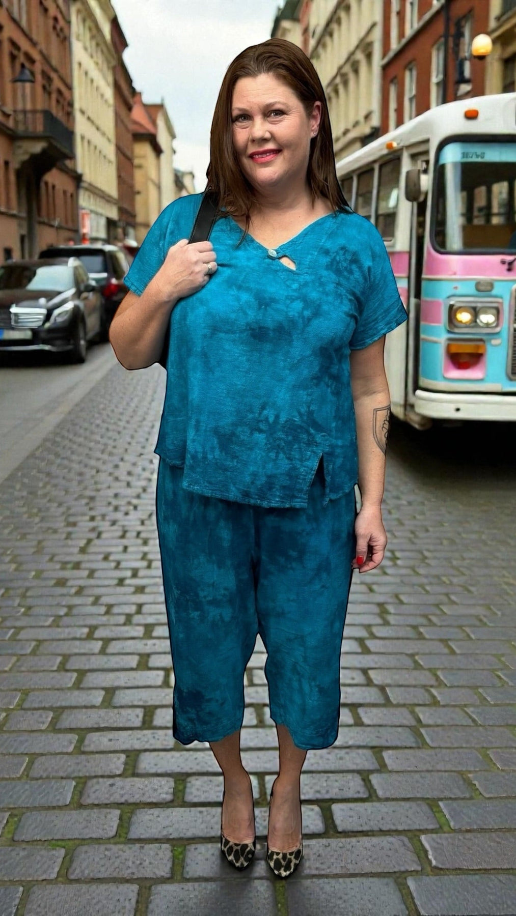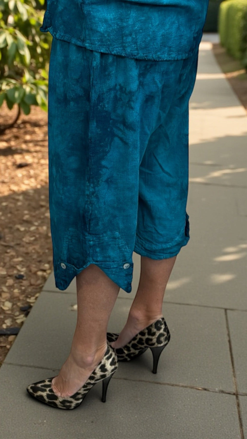 Stay cool and comfortable in these effortlessly stylish cotton gauze capris, designed for everyday wear and easy movement. Featuring a beautiful washed blend of teal and navy, these capris offer a soft two-tone look that’s both flattering and versatile.